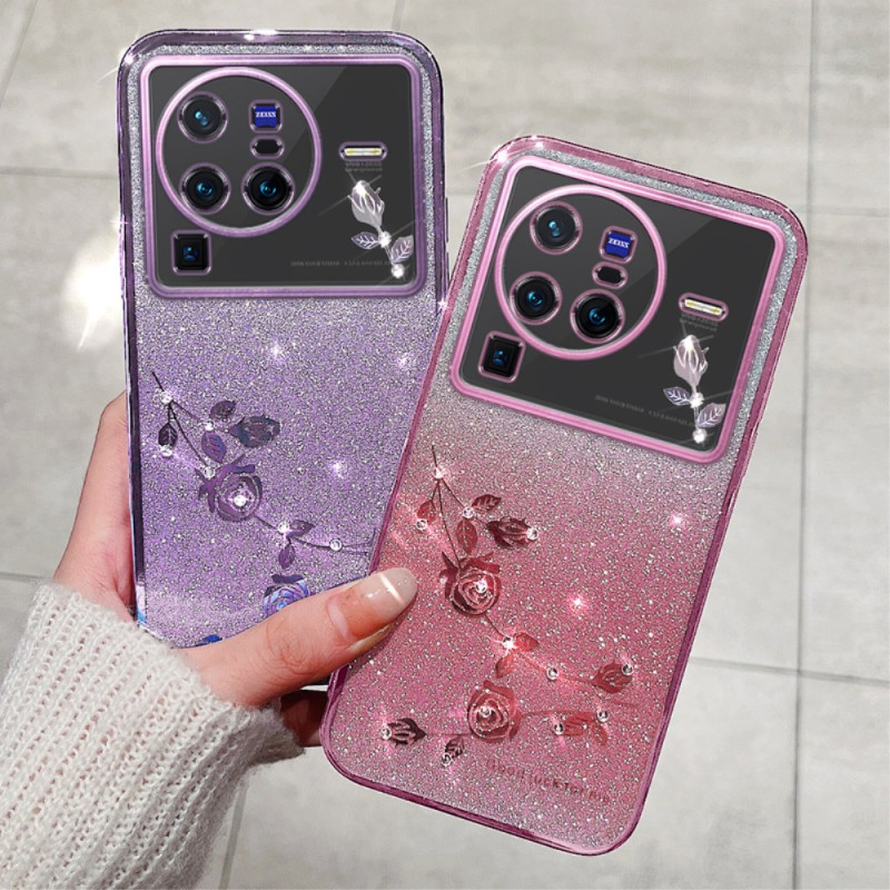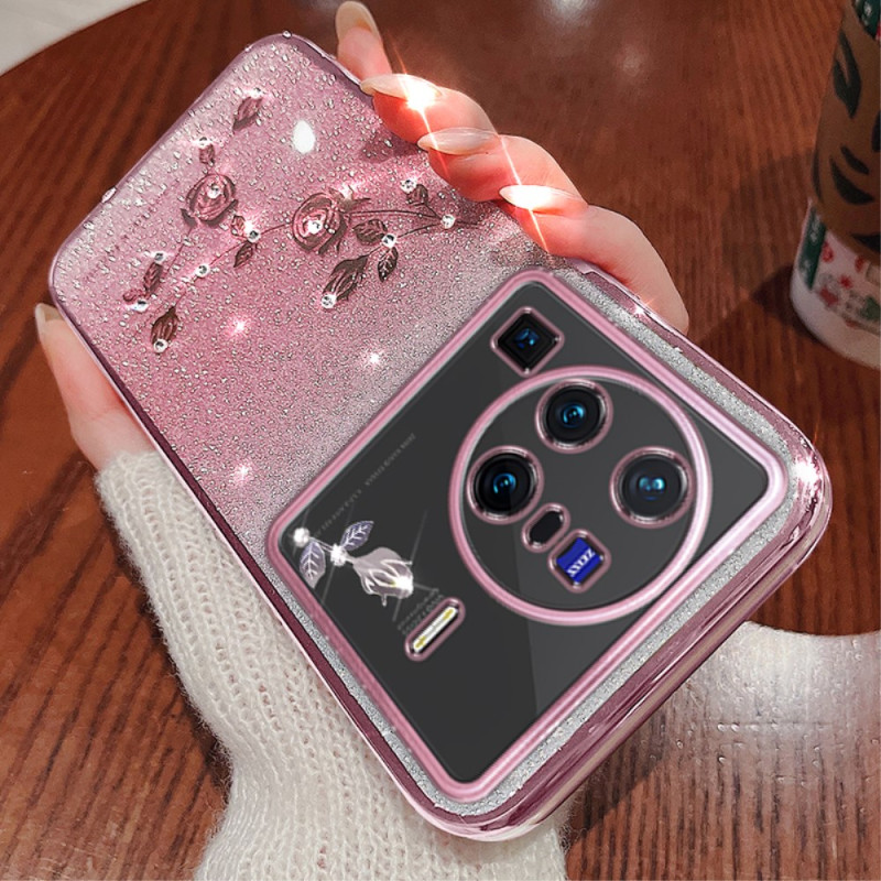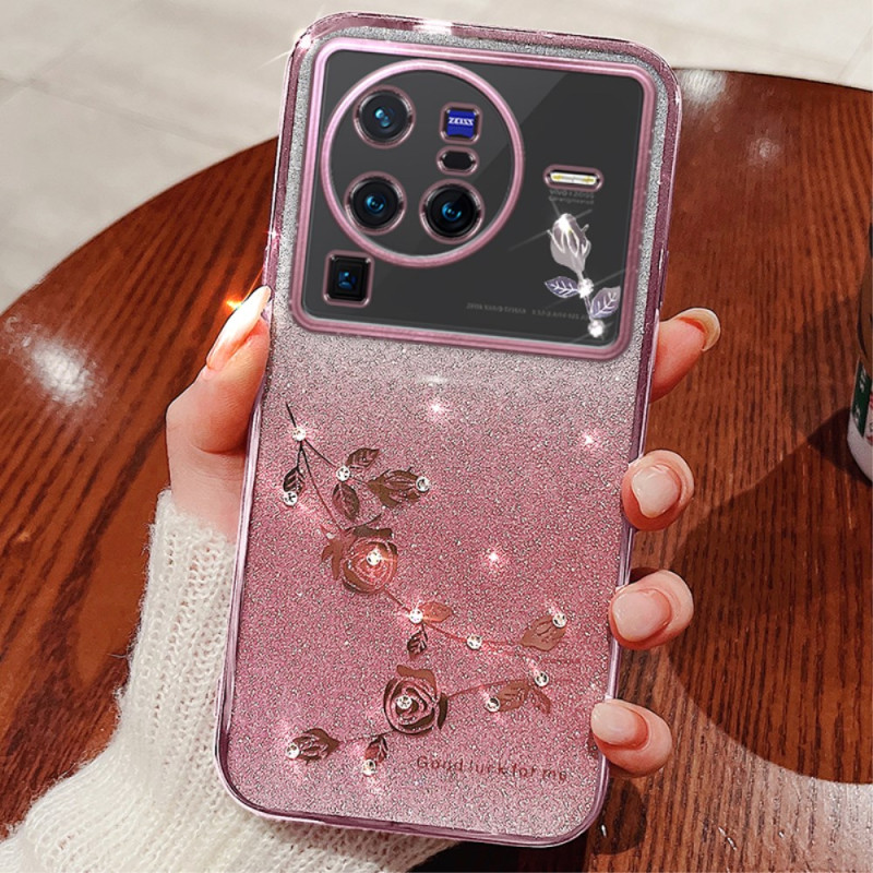 Proteja o seu vivo X80 Pro 5G com estilo com esta capa em TPU adornada com lantejoulas gradientes cintilantes, um padrão floral intemporal e delicados strass. Um design glamoroso que combina estilo com proteção diária.