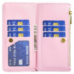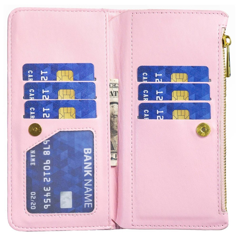 Tem um fecho de correr resistente e suporte interno para cartões.