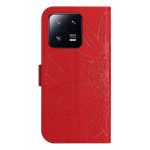 A capa em pele sintética apresenta um motivo floral e é fornecida com uma correia para facilitar o transporte do Xiaomi 13 Pro.