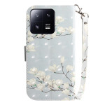 O Xiaomi 13 Pro é perfeitamente seguro com este capa com um padrão de ramo de flor que vem com uma alça.