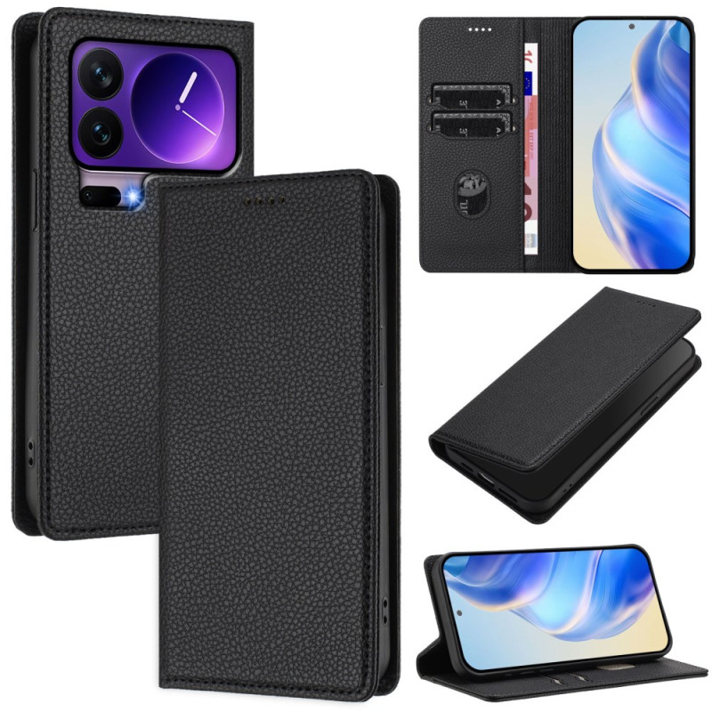 Descubra a nossa capa de couro texturizada para carteira para o Xiaomi 17 Pro. Com tecnologia de bloqueio RFID, oferece uma proteção óptima para o seu telemóvel e cartões. Desfrute de funcionalidades práticas como o fecho magnético, ranhuras para cartões e notas e um suporte ajustável para uma utilização mãos-livres.