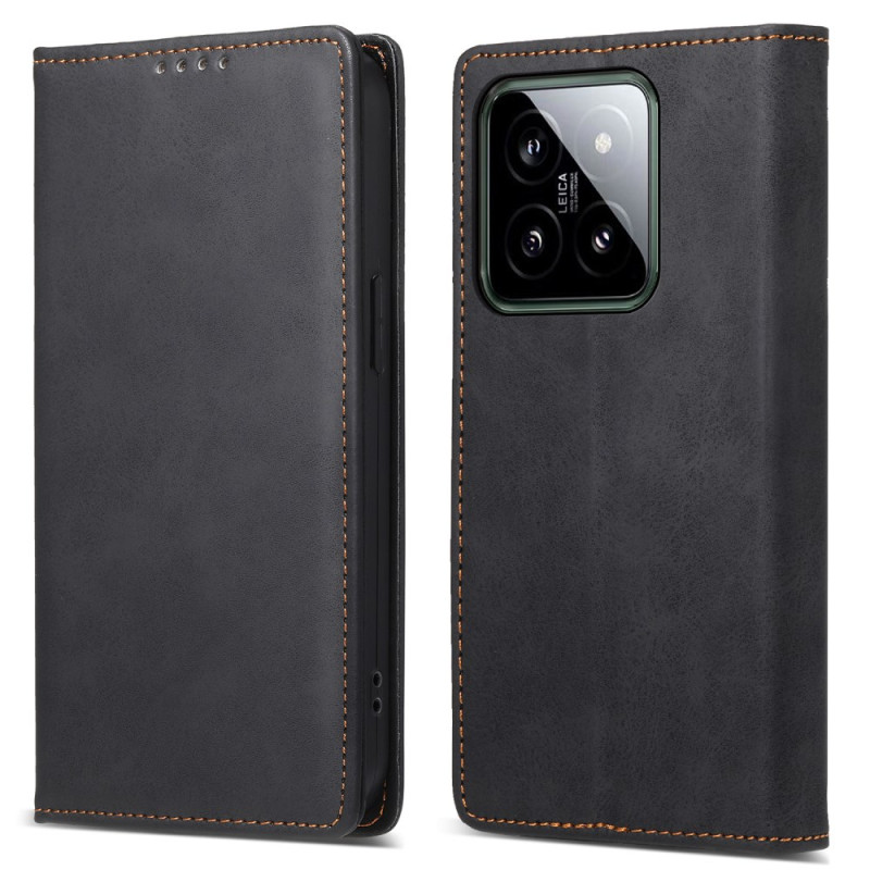 Découvrez la flip cover Effet Cuir Rétro pour Xiaomi 14, un accessoire de téléphone qui allie style et fonctionnalité.
