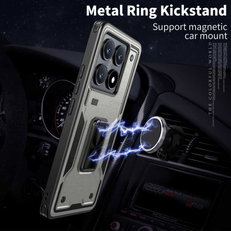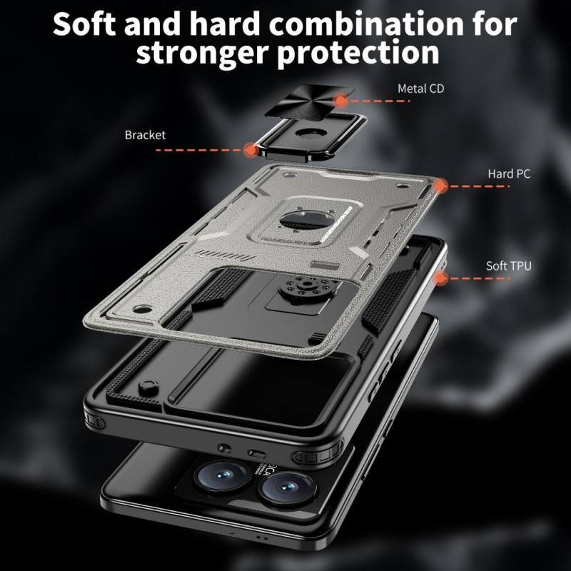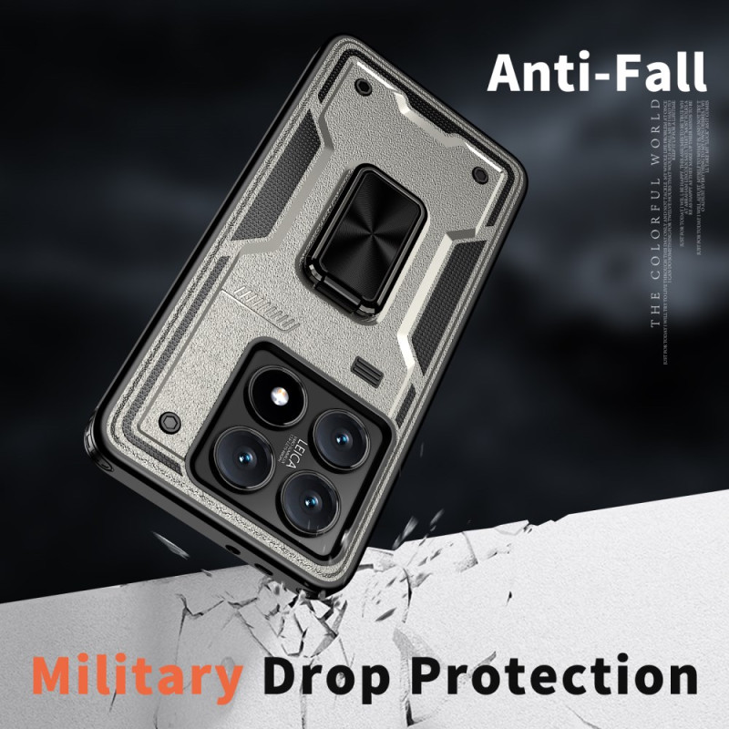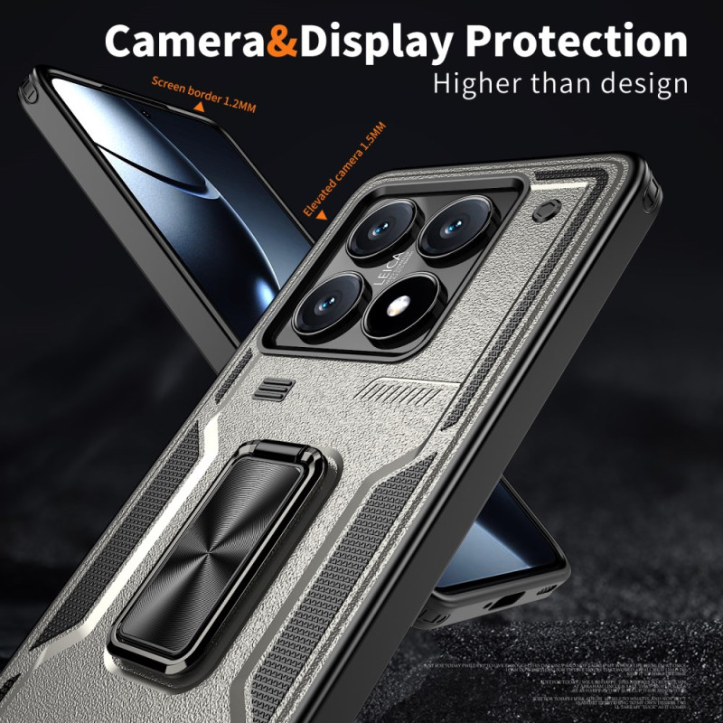 Descubra a nossa inovadora capa protetora para o Xiaomi 14T. Com um suporte de anel rotativo de 360°, oferece proteção contra quedas de nível militar, combina TPU macio e PC rígido e é compatível com suportes magnéticos para automóvel. As suas extremidades elevadas protegem o ecrã e a câmara contra riscos.