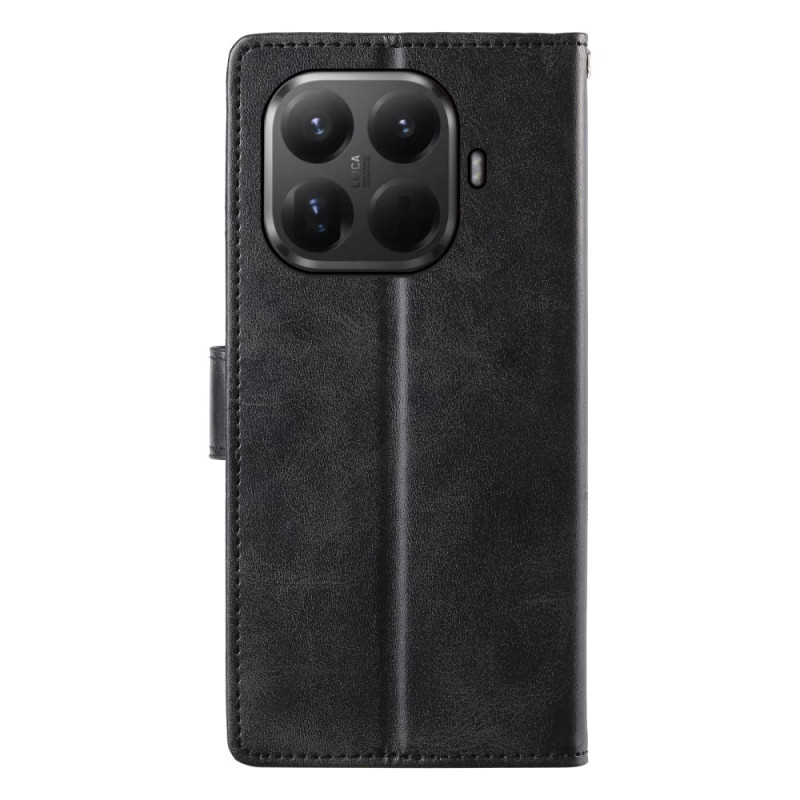 Capa em pele PU de alta qualidade com textura de vitela para o Xiaomi 15T Pro. Funcionalidade de carteira, suporte para visualização em mãos-livres, fecho magnético e proteção total. Inclui uma correia de pulso para um transporte fácil e maior segurança em movimento.