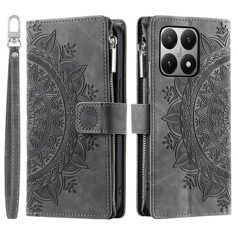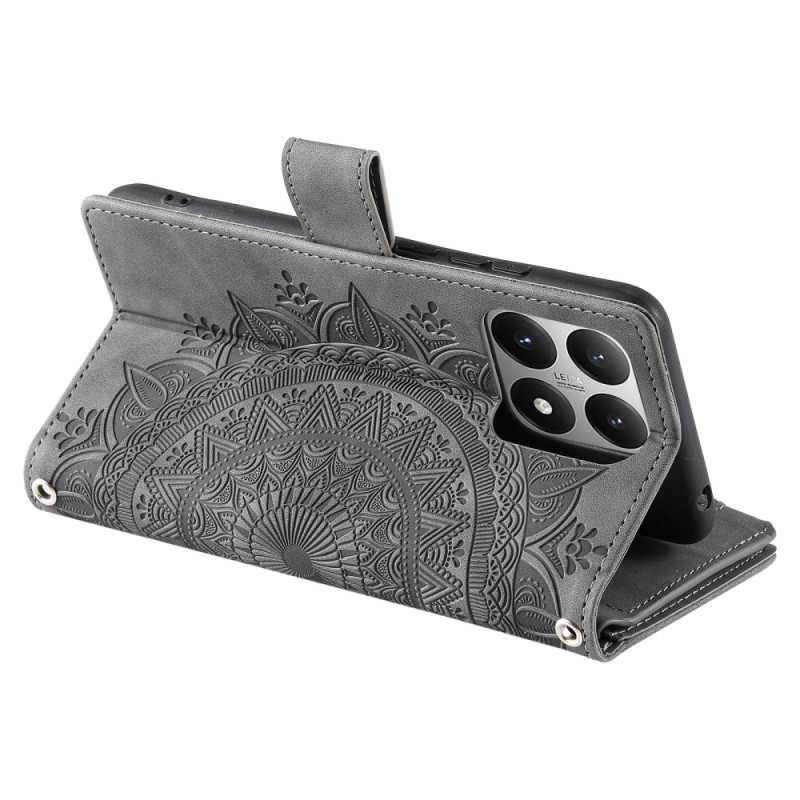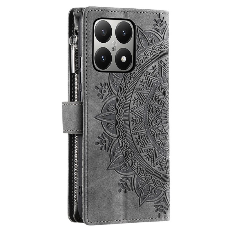 Descubra a nossa elegante e funcional capa de carteira para o Xiaomi 15T. Fabricada em pele PU de alta qualidade, oferece uma proteção duradoura e um design sofisticado com o seu motivo floral mandala. Com vários compartimentos de arrumação, um suporte integrado e uma prática alça de mão, esta capa combina estilo e praticidade para o seu dia a dia.