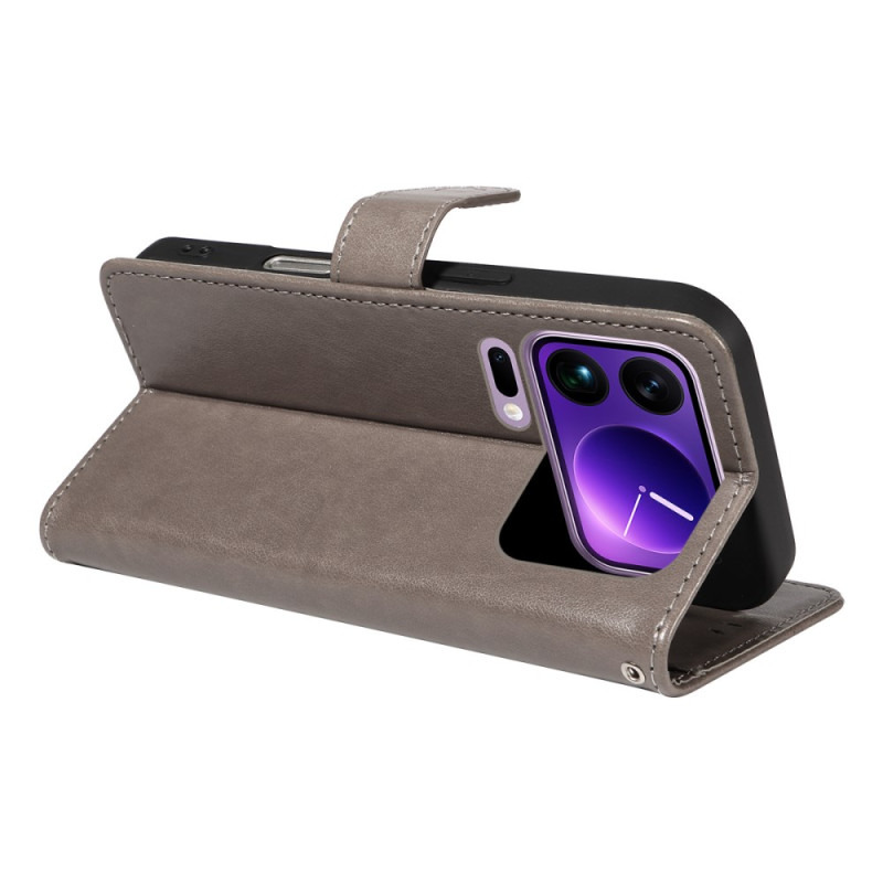 Descubra a nossa elegante carteira em pele PU para o Xiaomi 17 Pro Max. Combinando estilo e funcionalidade, oferece uma proteção robusta graças ao seu revestimento interior em TPU mate. Desfrute de duas ranhuras para cartões, um compartimento para notas e uma prática função de suporte para visualização em mãos-livres. A alça de mão incluída torna-a ainda mais portátil.