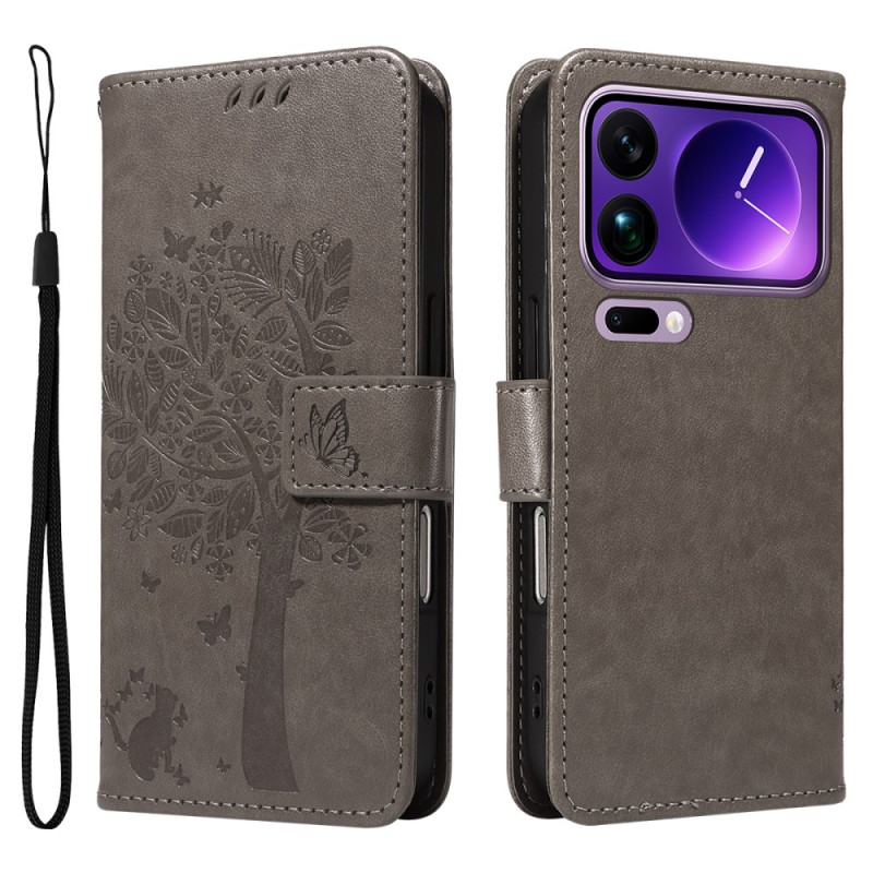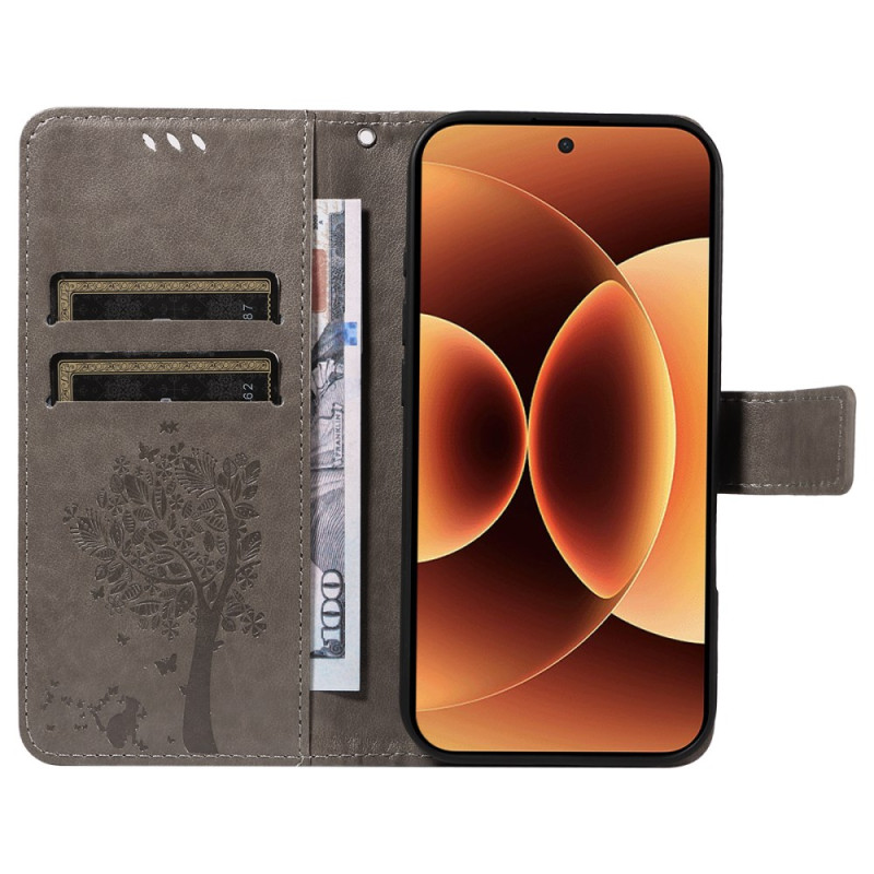 Descubra a nossa elegante capa tipo carteira para o Xiaomi 17 Pro Max. Fabricada em pele PU de primeira qualidade com um padrão de árvore e gato, oferece uma proteção robusta e um estilo único. Desfrute da funcionalidade de carteira com ranhuras para cartões e um prático suporte para ver com as mãos livres.