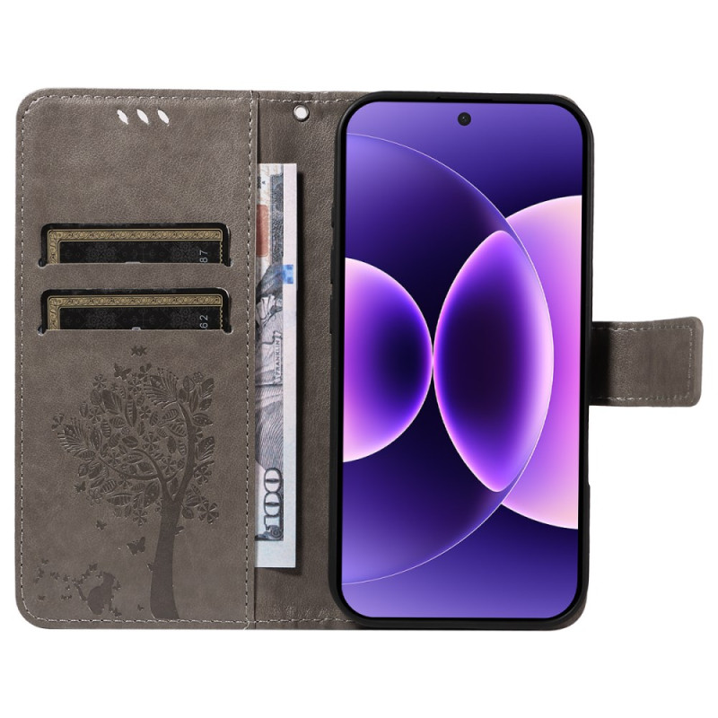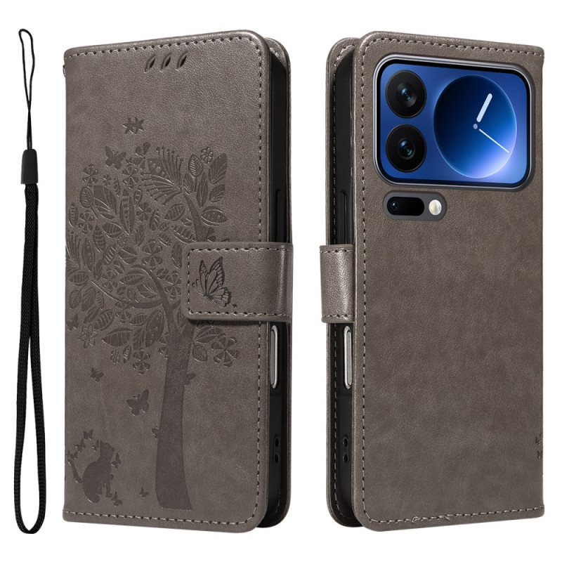 Descubra a nossa elegante capa de carteira para o Xiaomi 17 Pro. Fabricada em pele PU de alta qualidade e com um motivo de gato e uma árvore impressos, oferece uma proteção robusta e um estilo único. Com caraterísticas práticas como um suporte integrado, ranhuras para cartões e uma correia de pulso, é o acessório perfeito para o seu smartphone.