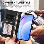 Étui portefeuille élégant avec protection RFID pour Xiaomi 17 Pro. Texture cuir de veau premium, support pliable intégré, rangement pour cartes et billets. Protection anti-choc renforcée avec dragonne détachable pour plus de sécurité et praticité.