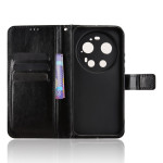 Étui portefeuille élégant en cuir PU texture Crazy Horse pour Xiaomi 17 Ultra. Doté de 3 emplacements pour cartes, 1 compartiment pour espèces, fonction support mains libres et fermeture magnétique sécurisée. Livré avec dragonne pratique.