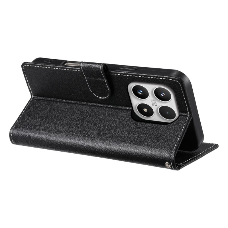 Descubra a nossa capa de couro PU premium para carteira para o Xiaomi 17. Com um revestimento interior em TPU flexível, ranhuras para cartões e fecho magnético, oferece uma proteção robusta e um armazenamento prático. A aba transforma-se num suporte para visualização em mãos livres, enquanto a alça de mão facilita o transporte.