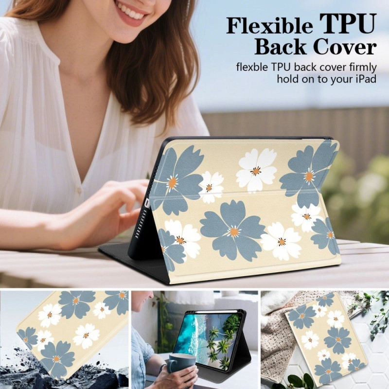Proteja o seu tablet Xiaomi com estilo com esta capa azul com estampado de margaridas.
