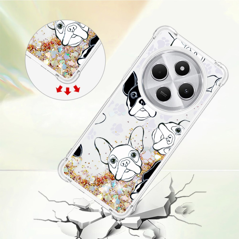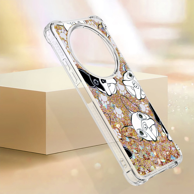 Descubra a nossa capa protetora em TPU com um design flutuante de purpurinas líquidas.