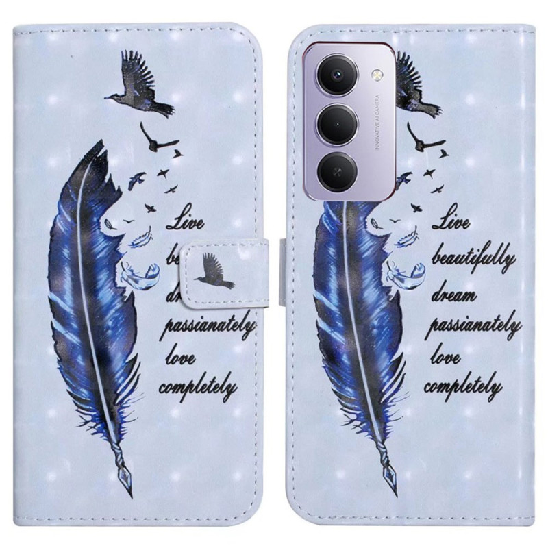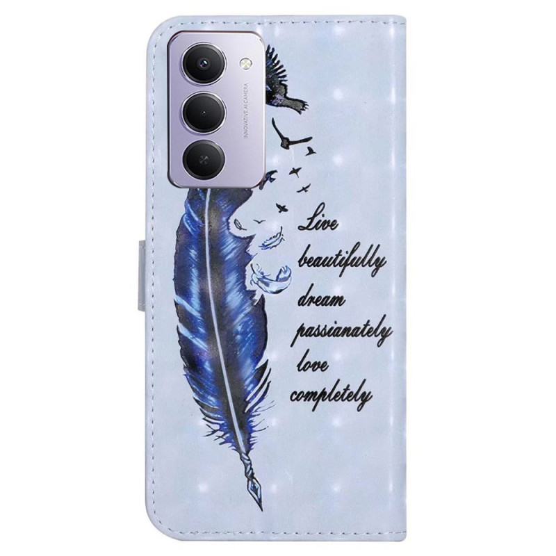 Descubra a nossa capa 3D criativa para o Xiaomi Redmi 15 4G. Com um design único com um motivo de penas azuis, oferece proteção completa e funcionalidades práticas. Fabricada em pele PU de alta qualidade, tem 3 ranhuras para cartões, um bolso para bilhetes e uma função de suporte. Acrescente estilo e funcionalidade ao seu telemóvel.