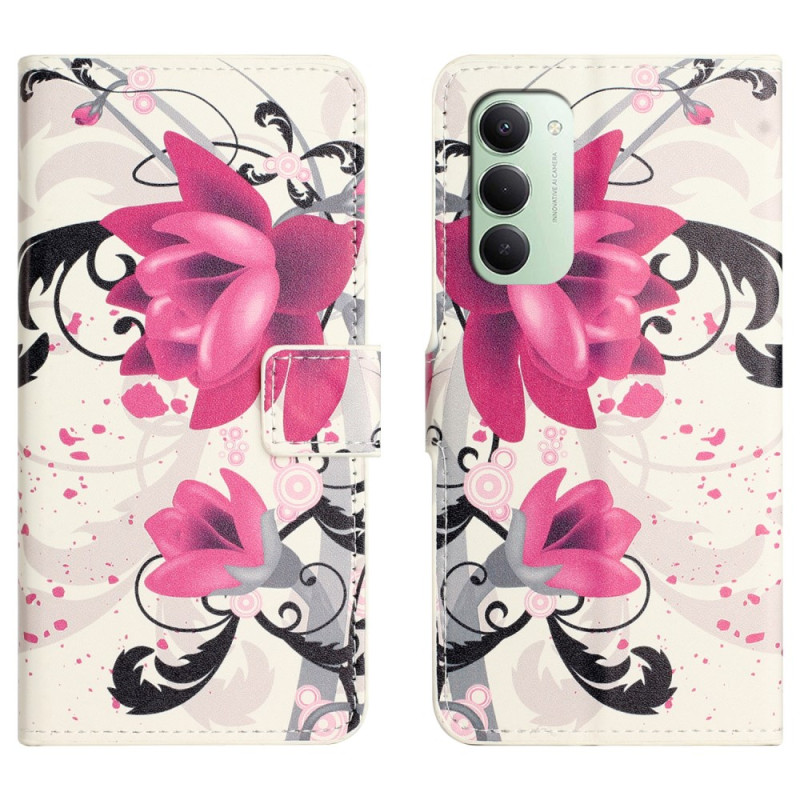 Descubra a nossa elegante capa de carteira para o Xiaomi Redmi 15 4G. Combinando estilo e funcionalidade, esta capa em pele PU oferece proteção completa com um design distinto em forma de lótus. Desfrute da comodidade de um suporte para cartões integrado, de um suporte de visualização mãos-livres e de um fecho magnético seguro.