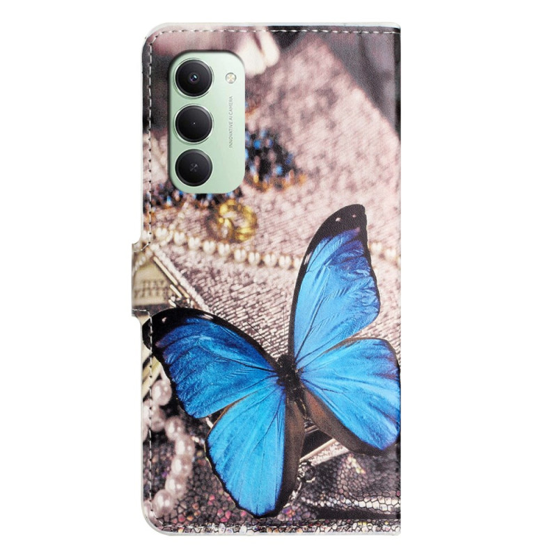Descubra a nossa capa de couro PU para carteira para o Xiaomi Redmi 15 4G, que combina estilo e funcionalidade. Com o seu distinto motivo de borboleta azul, oferece uma proteção completa, um suporte prático para visualização em mãos livres e ranhuras para cartões e notas. O fecho magnético mantém os seus pertences seguros.