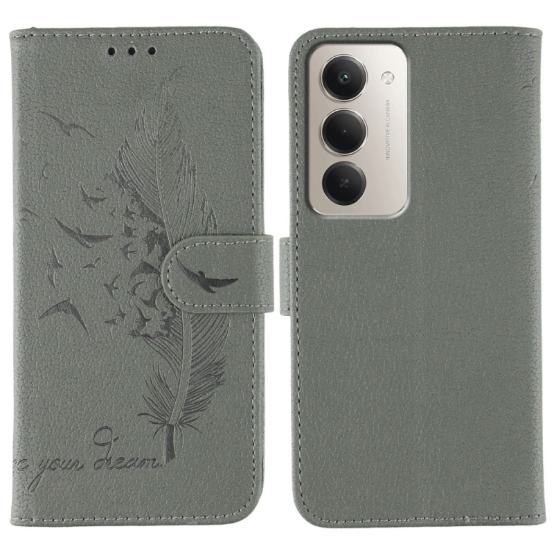 Descubra a nossa elegante capa para o Xiaomi Redmi 15 4G. Fabricada em pele PU texturada e TPU, oferece uma aderência confortável e um aspeto luxuoso. Com o seu motivo de penas impresso, suporte ajustável, compartimentos de arrumação práticos e fecho magnético, esta capa combina funcionalidade e estilo para uma proteção óptima do seu smartphone.