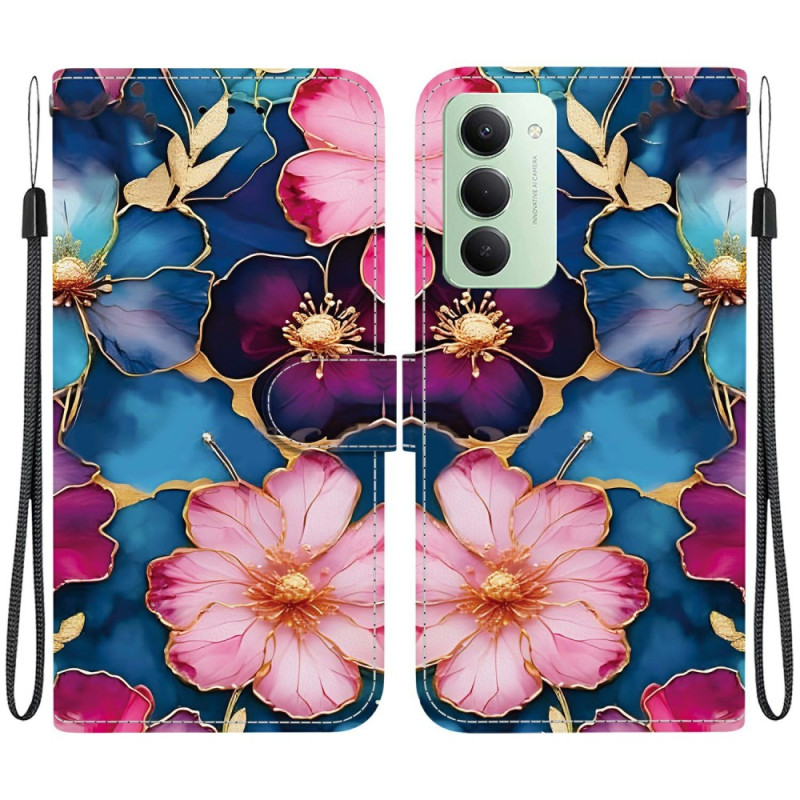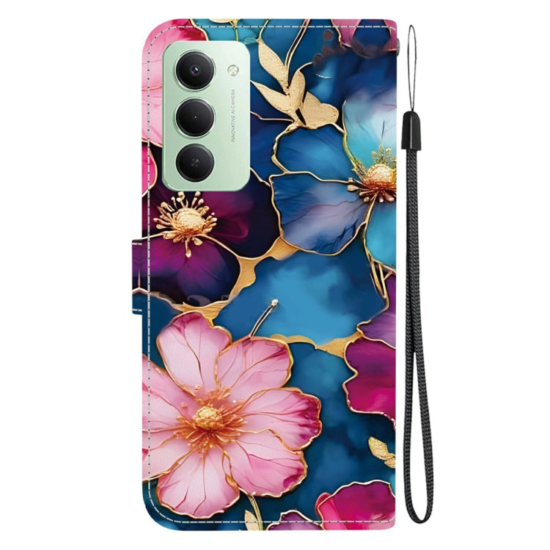 Descubra a nossa elegante capa de carteira para o Xiaomi Redmi 15 4G. Fabricada em pele PU e TPU de alta qualidade, apresenta um design único com um padrão floral azul e dourado. Desfrute de proteção total, um prático suporte dobrável e funcionalidades de armazenamento para os seus cartões e dinheiro.