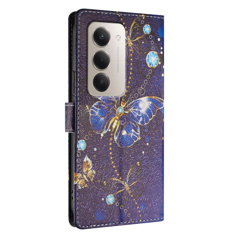 Descubra a nossa elegante capa de carteira para o Xiaomi Redmi 15 5G / 4G, que combina estilo e funcionalidade. Com a sua impressão exclusiva de borboleta azul, oferece uma proteção duradoura, armazenamento prático e uma função de suporte. O fecho magnético e a alça de mão amovível tornam-na segura e prática para uma utilização quotidiana.