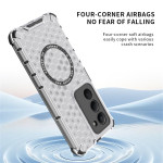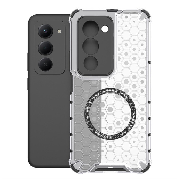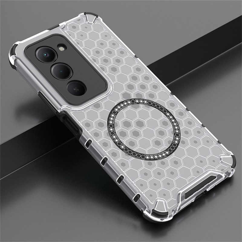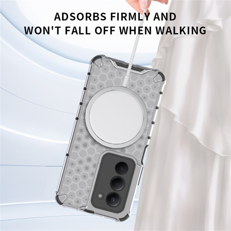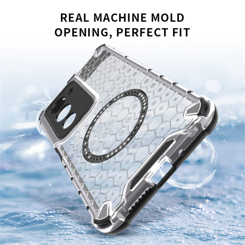 Proteja o seu smartphone com estilo com esta capa híbrida com um requintado design em forma de favo de mel. O design TPU + PC oferece uma proteção reforçada nos cantos, compatibilidade MagSafe integrada e uma óptima resistência a choques e riscos.