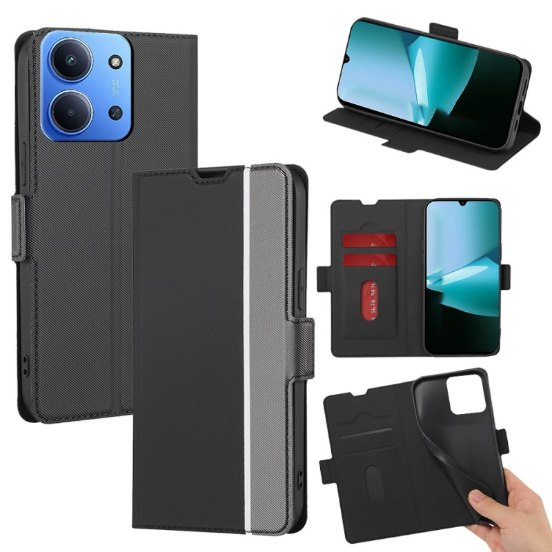Descubra a nossa elegante capa para o Xiaomi Redmi 15C 4G. Fabricada em pele PU texturada de alta qualidade, oferece uma proteção completa com uma capa interior em TPU flexível. Desfrute de duas ranhuras para cartões, um suporte prático para visualização em mãos-livres e um fecho magnético seguro.