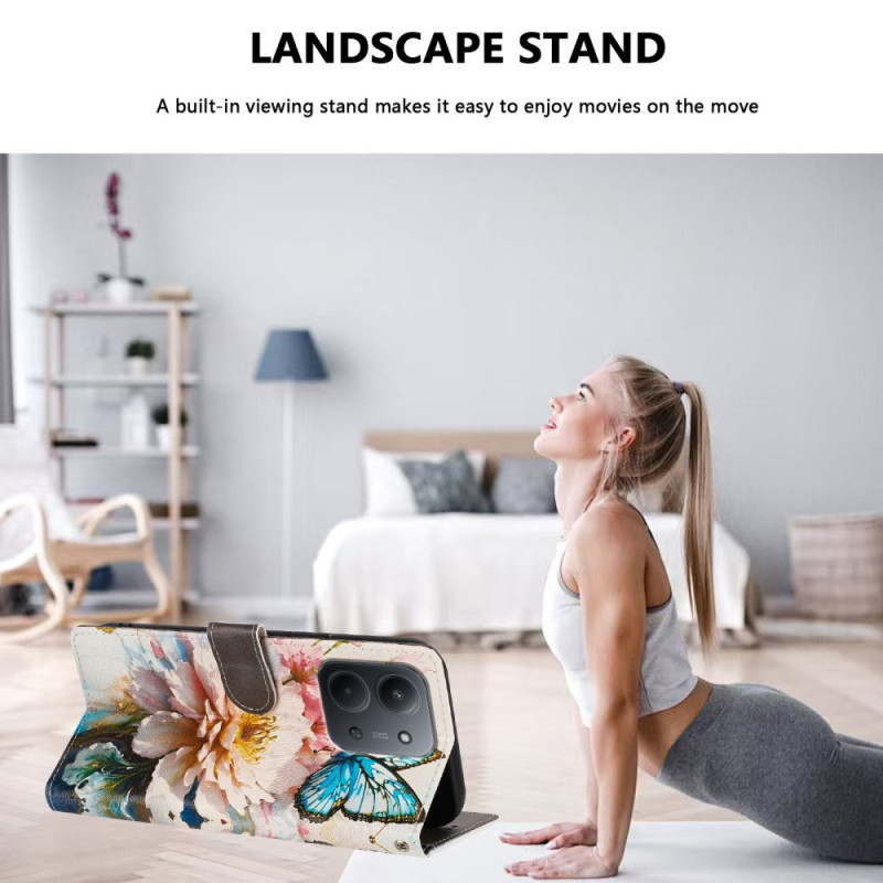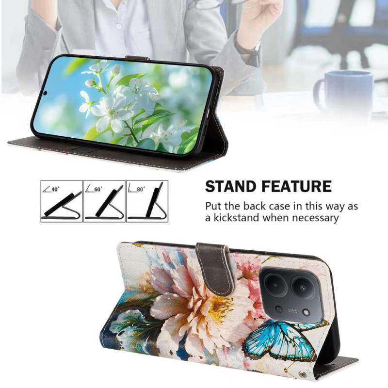Descubra a nossa capa de couro PU para Xiaomi Redmi 15C 5G / 4G, que combina estilo e funcionalidade. Com o seu design com estampado de borboleta/flor, ranhuras de arrumação e função de suporte, oferece uma proteção completa ao mesmo tempo que dá um toque de elegância ao seu telemóvel. Desfrute de uma utilização prática no dia a dia graças à sua alça de mão amovível e ao fecho magnético.