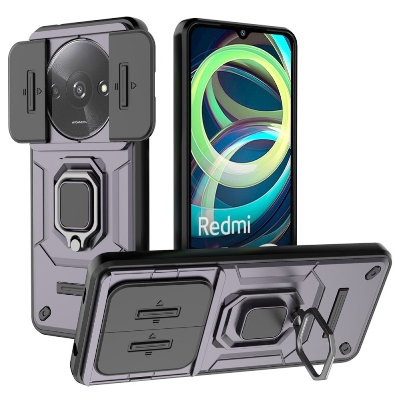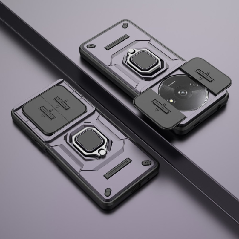 Esta capa para o Xiaomi Redmi A3 / Poco C61 inclui uma tampa deslizante para a câmara e um anel de suporte.