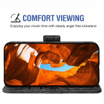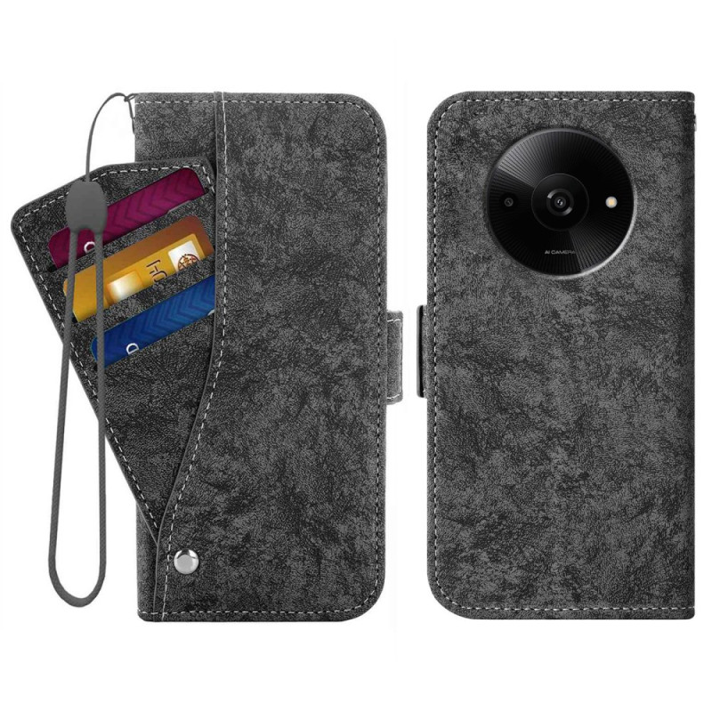 Estojo elegante com motivos artísticos a tinta da china. Possui 3 ranhuras para cartões, 1 bolso para bilhetes e um porta-cartões rotativo externo. Fecho magnético duplo, função mãos-livres e alça de mão prática.