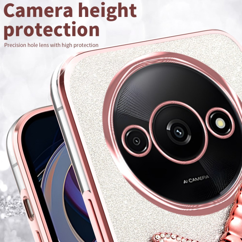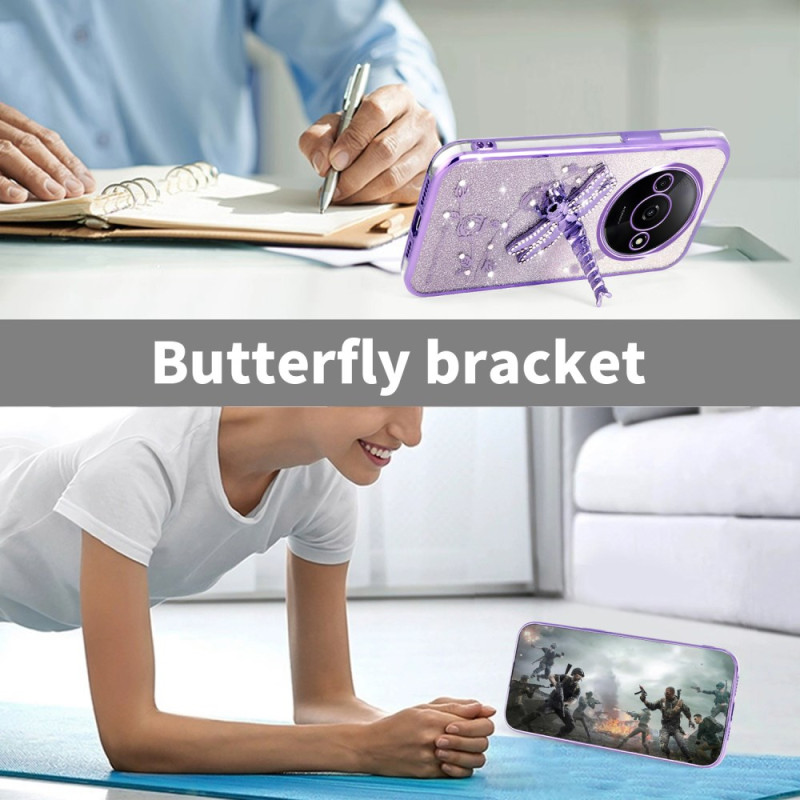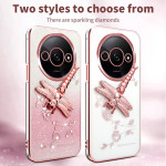 Proteja o seu smartphone com estilo com esta capa cintilante adornada com flores eternas e strass. O suporte de libélula integrado permite ver com as mãos livres, enquanto os rebordos elevados protegem eficazmente a sua câmara.