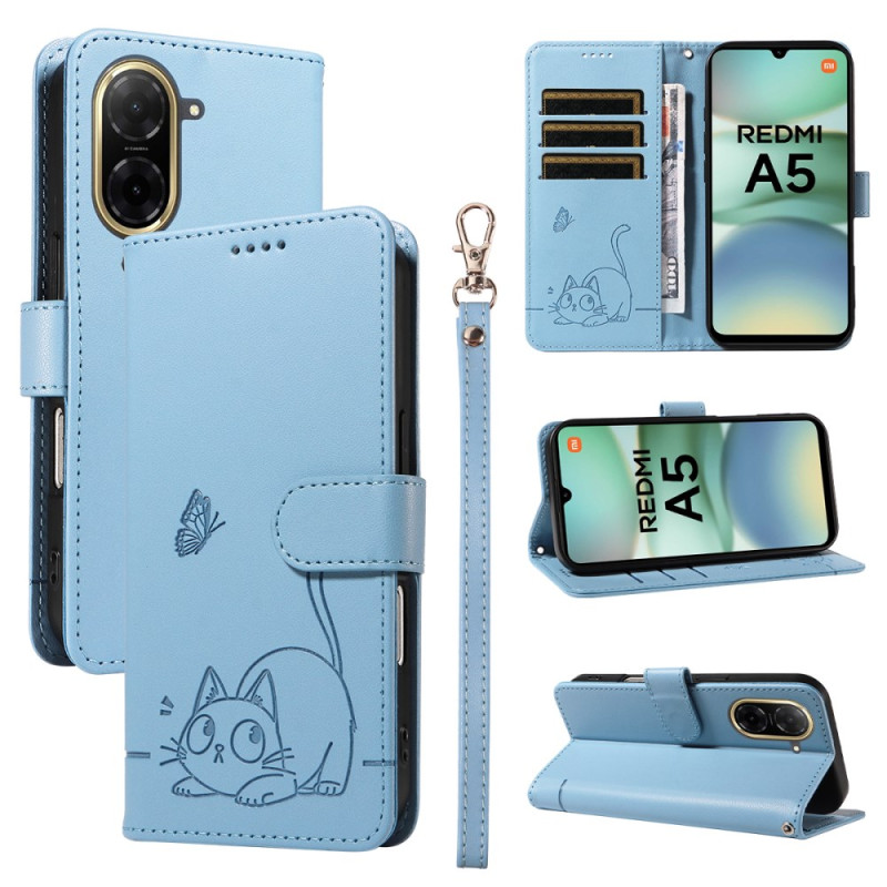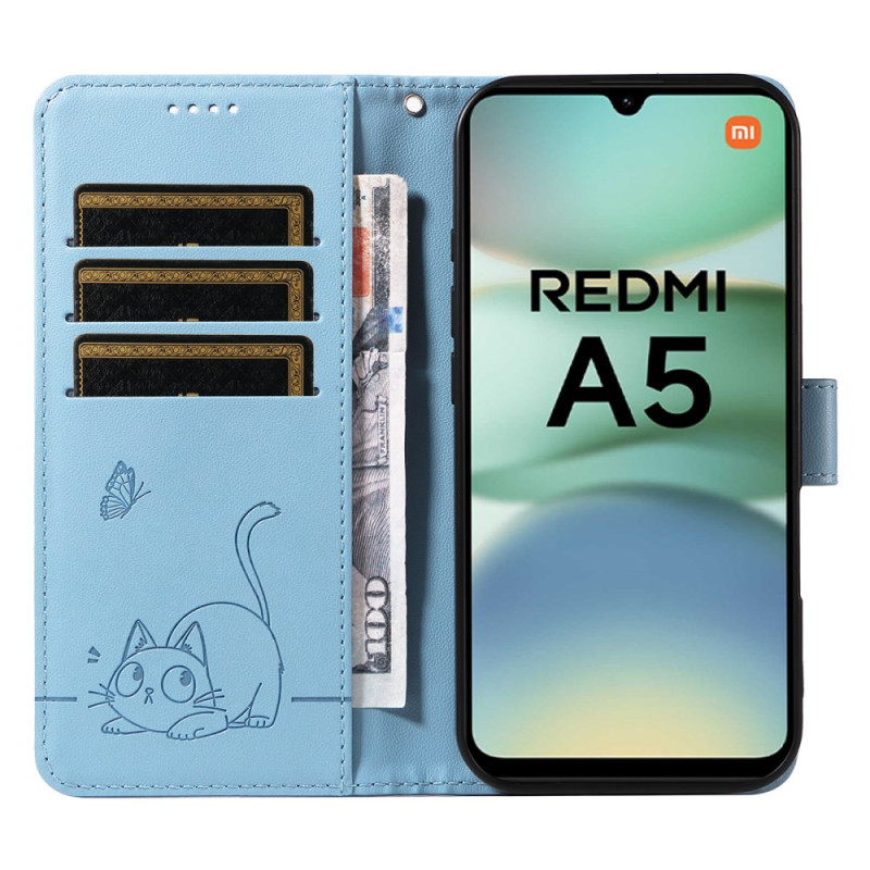 Capa multifunções para carteira para o Xiaomi Redmi A5 com motivo de gato da sorte. Inclui três ranhuras para cartões, um bolso para dinheiro e um fecho magnético seguro.