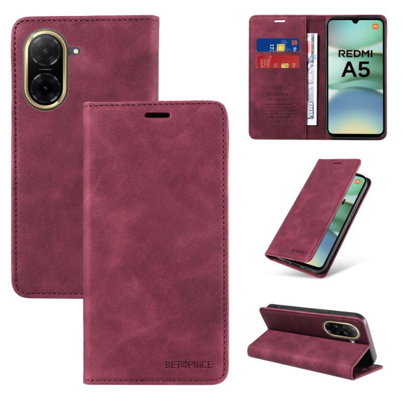 Descubra a nossa capa de couro para carteira para o Xiaomi Redmi A5. Oferecendo uma proteção completa, possui um fecho magnético, bloqueio RFID, ranhuras para cartões e um suporte integrado.