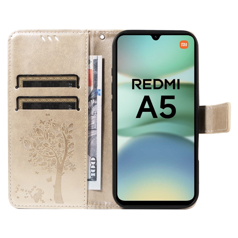 Descubra a nossa capa de telemóvel elegante e funcional para o Xiaomi Redmi A5. Fabricada em pele PU de alta qualidade com um motivo de gato e uma árvore impressos, oferece uma proteção robusta e um estilo único. Com ranhuras para cartões, um compartimento para notas e uma função de suporte, é a solução perfeita para combinar praticidade e proteção.