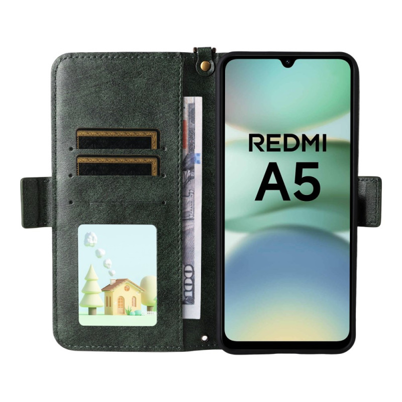 Descubra a nossa capa multifunções para o Xiaomi Redmi A5. Combinando proteção e funcionalidade de carteira, oferece ranhuras para cartões e dinheiro. Fabricada em pele PU de alta qualidade e TPU macio, garante durabilidade e estilo.