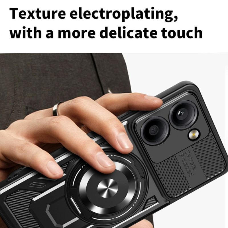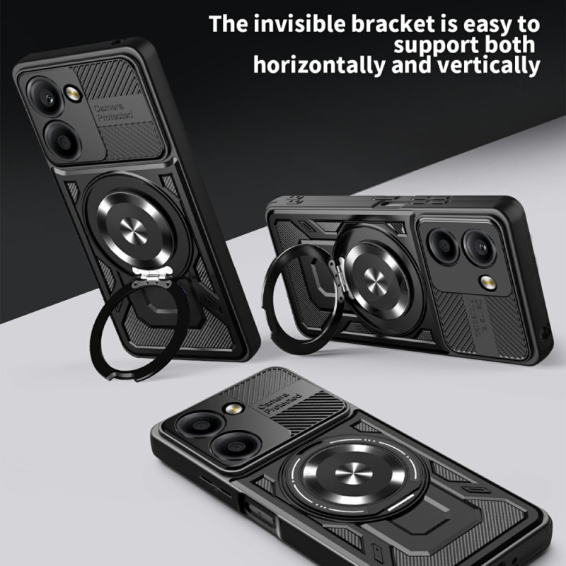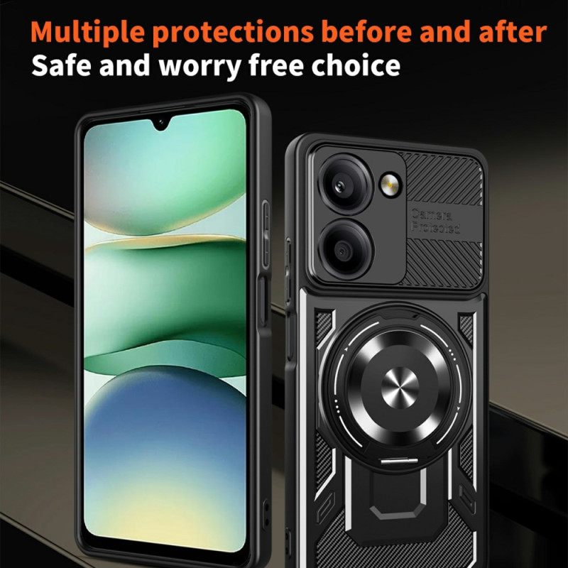 Descubra a nossa capa protetora topo de gama para o Xiaomi Redmi A5. Com uma dupla camada de proteção militar, um suporte rotativo de 360° e compatibilidade MagSafe, combina segurança e funcionalidade.