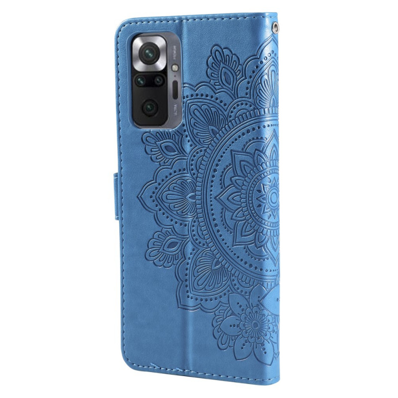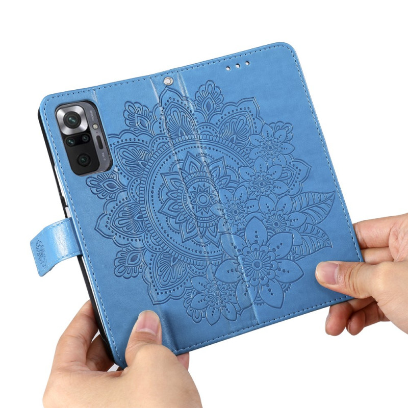 Uma bonita capa para Xiaomi Redmi Note 10 Pro com um design de mandala de um Sol que se dobra como carteira e suporte.
