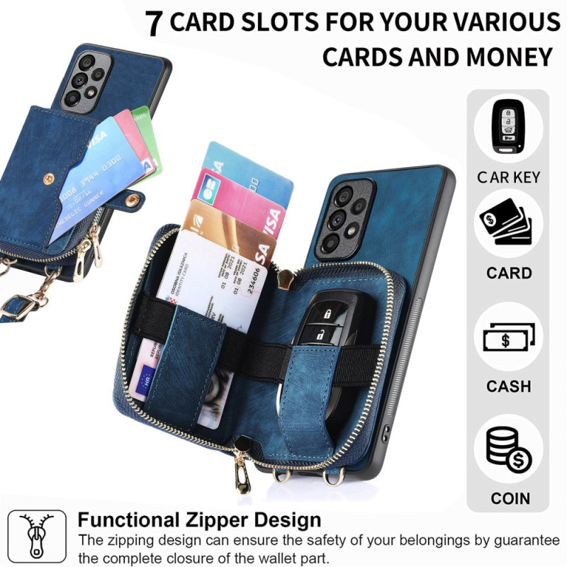 Tem um bolso com fecho e ranhuras para cartões para guardar os seus cartões essenciais e dinheiro.