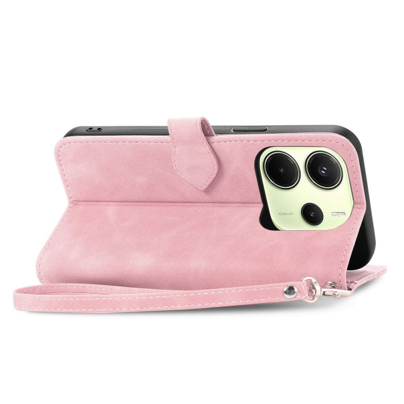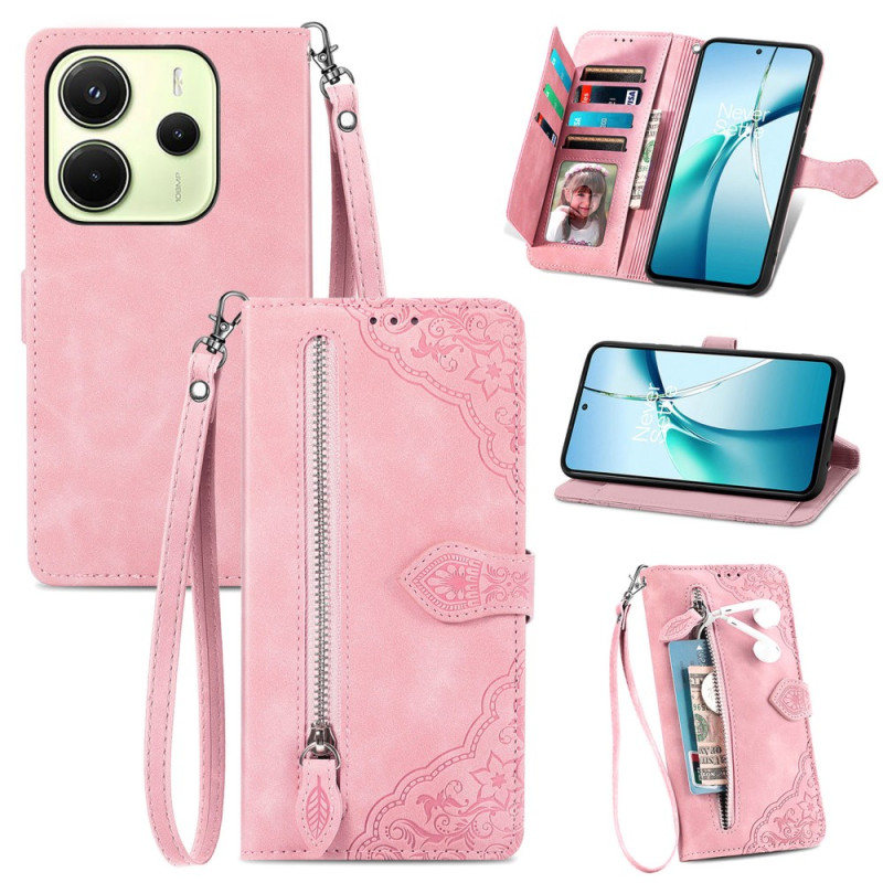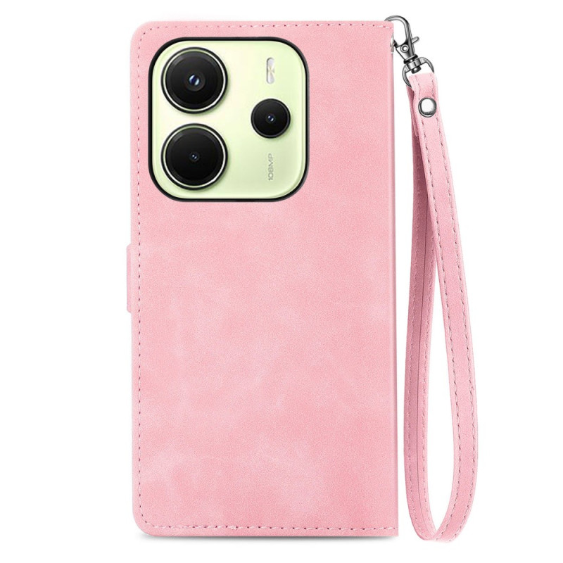 Descubra a nossa elegante capa de carteira para o Xiaomi Redmi Note 14 4G. Fabricada em pele PU de alta qualidade com um motivo floral, oferece uma proteção completa e um espaço de arrumação prático.
