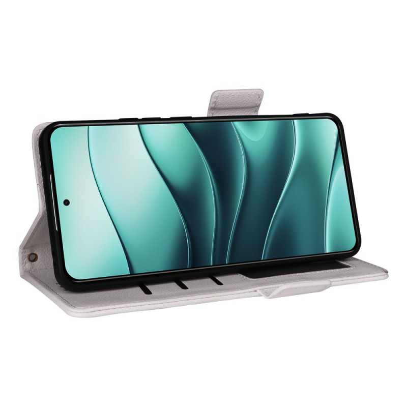 Descubra a nossa elegante capa tipo carteira para o Xiaomi Redmi Note 14. Fabricada em pele PU de alta qualidade com uma textura de lichia, oferece uma proteção completa e funcionalidades práticas.
