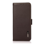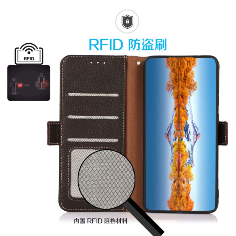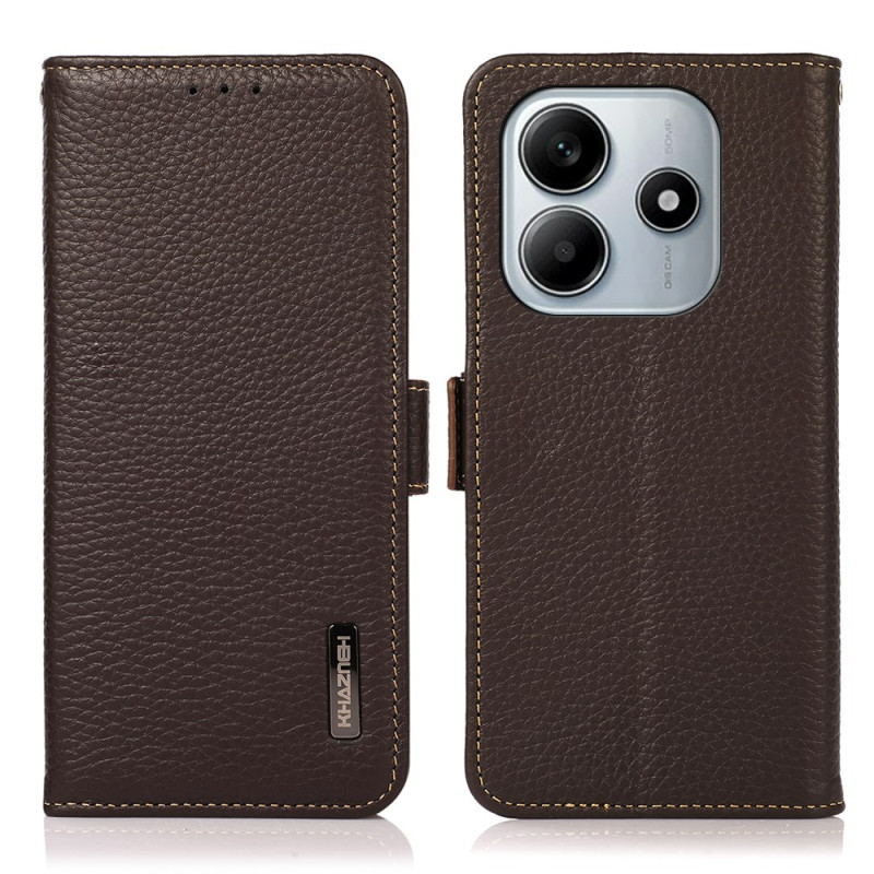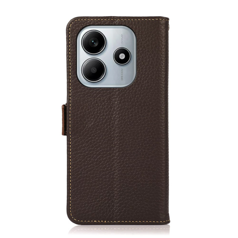 Descubra a nossa capa em pele genuína para o Xiaomi Redmi Note 14 5G. Elegante e prática, oferece proteção RFID, ranhuras para cartões e notas e transforma-se num suporte.