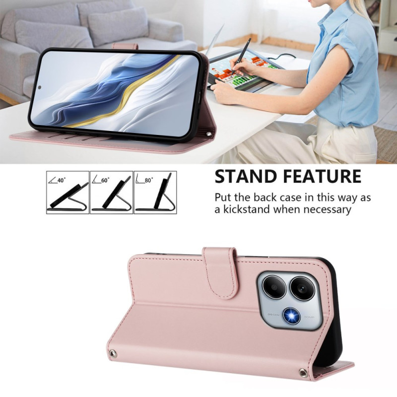 Descubra a nossa capa de couro para carteira para o Xiaomi Redmi Note 14 5G. Fabricada em couro PU e TPU de alta qualidade, oferece uma proteção duradoura e versátil. Com as suas 3 ranhuras para cartões, compartimento para notas e função de suporte, esta capa combina praticidade e segurança para o seu telemóvel.