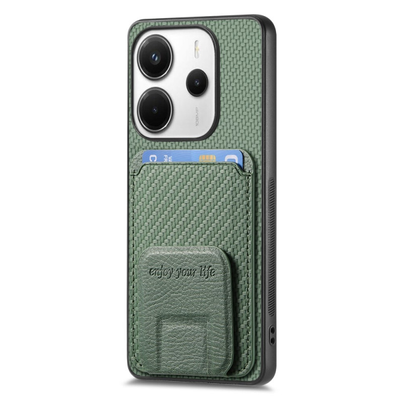 Descubra a nossa elegante capa para o Xiaomi Redmi Note 14 5G. Combinando estilo e funcionalidade, oferece uma proteção óptima com a sua textura de fibra de carbono e revestimento em pele. Tire partido do suporte para cartões integrado, do suporte dobrável e da compatibilidade com suportes magnéticos para automóvel.