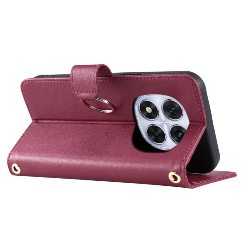 Capa elegante em pele PU e TPU para Xiaomi Redmi Note 14 Pro 4G. Design sofisticado com padrão de diamante, fivela de anel e caraterísticas versáteis.
