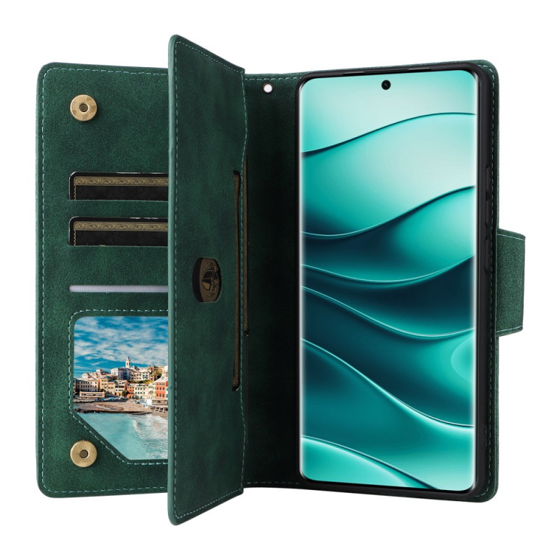 Com um fecho magnético, um bolso com fecho de correr e um suporte dobrável, combina praticidade e segurança para o seu telemóvel.