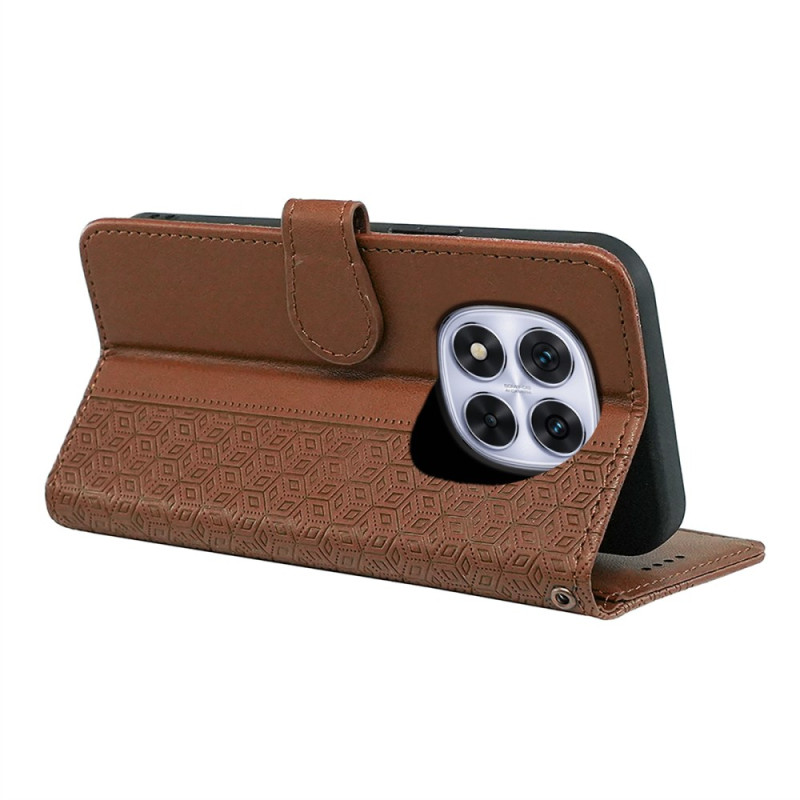 Descubra a nossa elegante capa de carteira em pele PU para o Xiaomi Redmi Note 14 Pro 4G. Com o seu motivo de cubo impresso, compartimentos práticos e suporte integrado, combina estilo e funcionalidade.