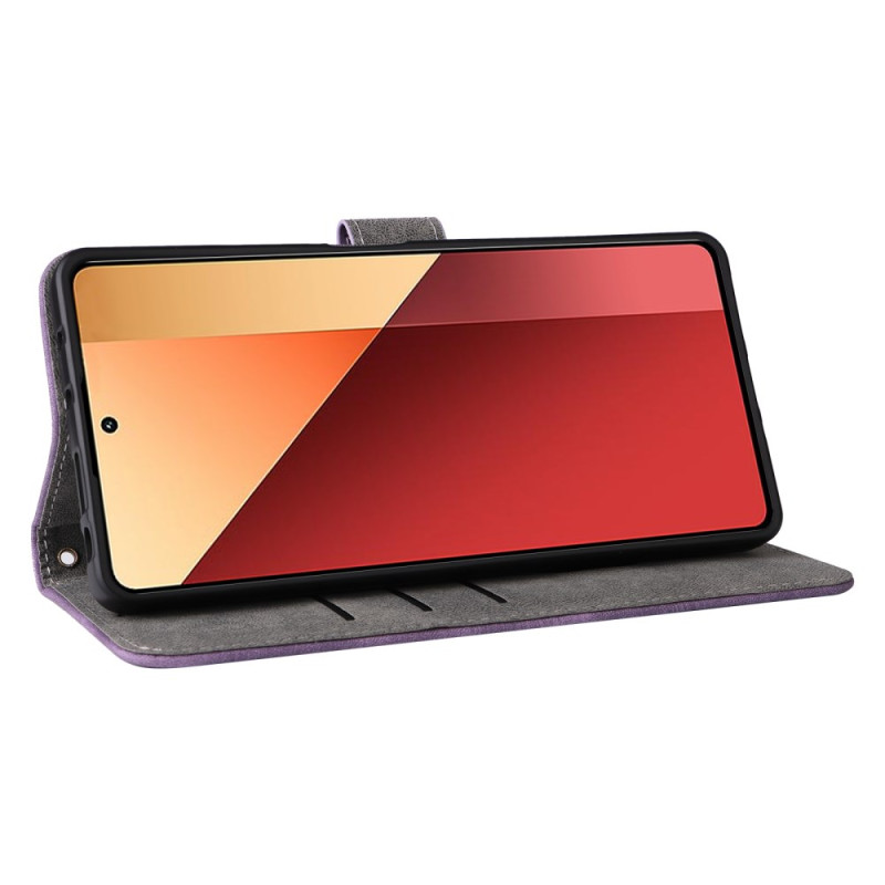 Descubra a nossa capa premium em pele PU para Xiaomi Redmi Note 14S / Note 13 Pro 4G / Poco M6 Pro 4G. Com uma função de carteira com 3 ranhuras para cartões e 1 para notas, oferece proteção RFID e uma prática função de suporte.
