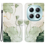 Capa elegante em pele com motivos de lótus para Xiaomi Redmi Note 15 5G. Design requintado com suporte dobrável, ranhuras para cartões, fecho magnético seguro e alça de mão prática. Proteção completa que combina estilo e funcionalidade.