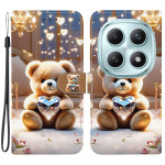 Capa elegante com motivo de urso com diamantes para o seu Xiaomi Redmi Note 15 5G. Inclui um suporte dobrável, 2 ranhuras para cartões, um bolso para dinheiro e uma correia de pulso amovível. Proteção magnética segura contra choques e riscos do dia a dia.
