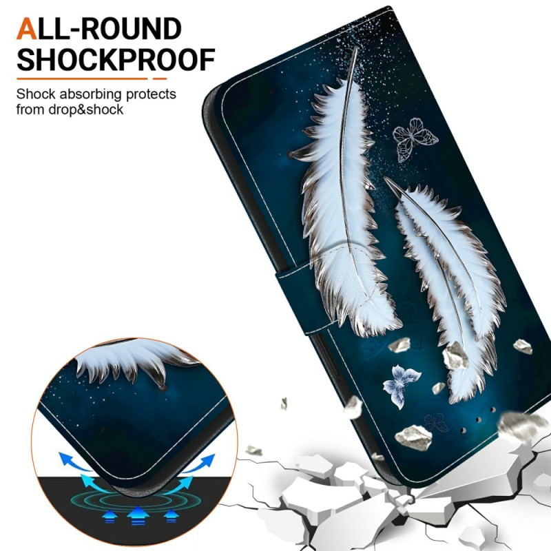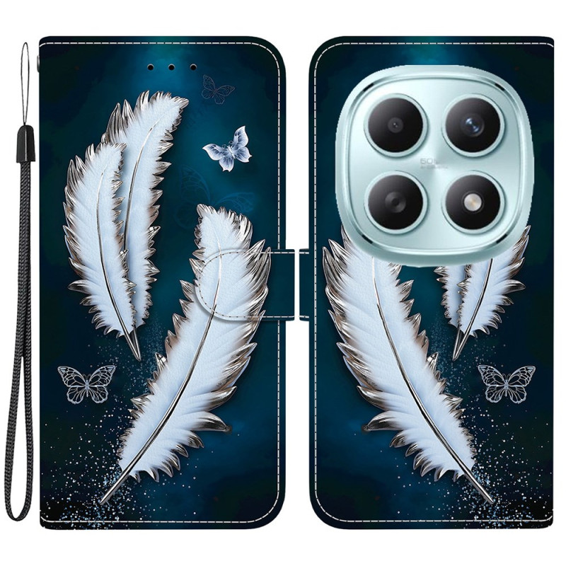Proteja o seu Xiaomi Redmi Note 15 5G com estilo com esta capa de carteira com aba com um padrão de penas de borboleta brancas. Com uma função de suporte, ranhuras para cartões, um fecho magnético seguro e uma alça amovível para um transporte cómodo.