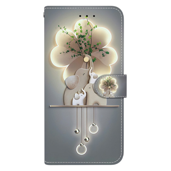 Capa elegante para carteira com um magnífico motivo de três elefantes. Inclui um suporte integrado, ranhuras para cartões e um fecho magnético seguro. Inclui uma prática correia amovível para facilitar o transporte diário.