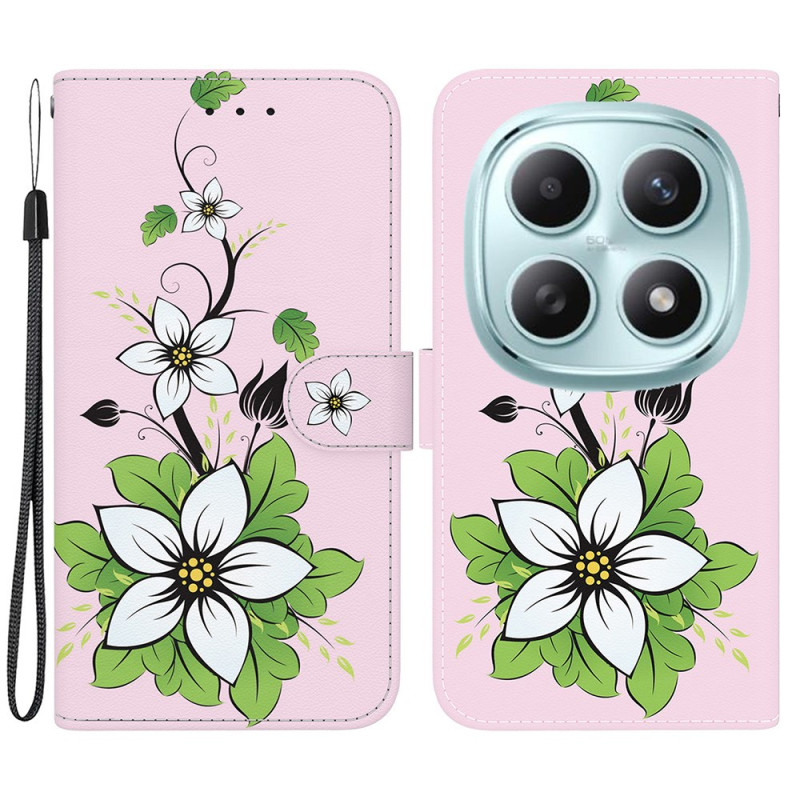 Proteja o seu smartphone com estilo com esta capa para carteira com aba, com um requintado motivo de lírio. Com uma função de suporte, compartimentos para cartões e uma prática alça de mão, combina estilo e funcionalidade para uma utilização quotidiana.